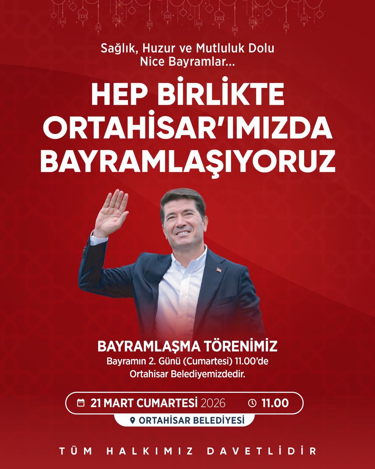 Başkan Kaya, “Tüm hemşerilerimi bayramın ikinci günü saat 11.00’de Ortahisar Belediyemizde gerçekleştireceğimiz bayramlaşma törenimize davet ediyorum” ifadelerini kullandı.