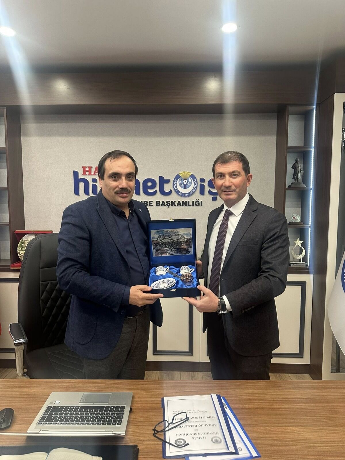Artvin'in Ardanuç İlçe Belediye Başkanı Emrah Yılmaz, Hizmet-İş Sendikası Trabzon Şube Başkanı Şevket Çelik'i ziyaret etti. Belediye ile yürütülen Toplu İş Sözleşmesinde de karşılıklı mutabakata varıldı. Çelik, "Artvin Ardanuç Belediyemiz ile yürüttüğümüz Toplu İş Sözleşmesi görüşmelerinde mutlu sona ulaştık. Emeğe, alın terine verdiği değerden dolayı tüm emekçi arkadaşlarımız adına Ardanuç Belediye başkanımız Emrah Yılmaz’a ve Şube sınırlarımız dışında bizlere güvenen bizlerin Artvin’de örgütlenmesini sağlayan Artvin Hak-iş il başkanımız Bülent Kaşıkçı’ya canı gönülden teşekkür ederiz. Alın terinin, emeğin ve dayanışmanın kazandığı bu sözleşme tüm emekçi kardeşlerimize hayırlı olsun" dedi.