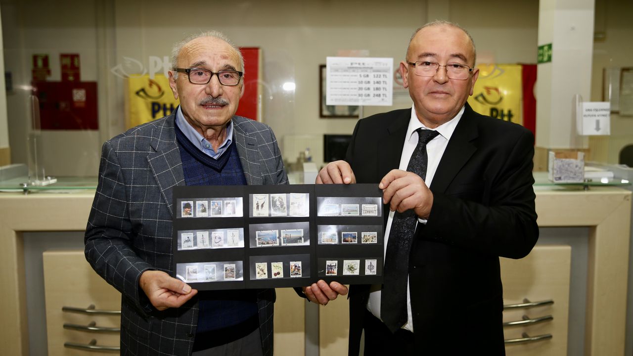 Giresun PTT Başmüdürü Şenel Yücel, Topuz'a PTT Pul Portföyü hediye etti.