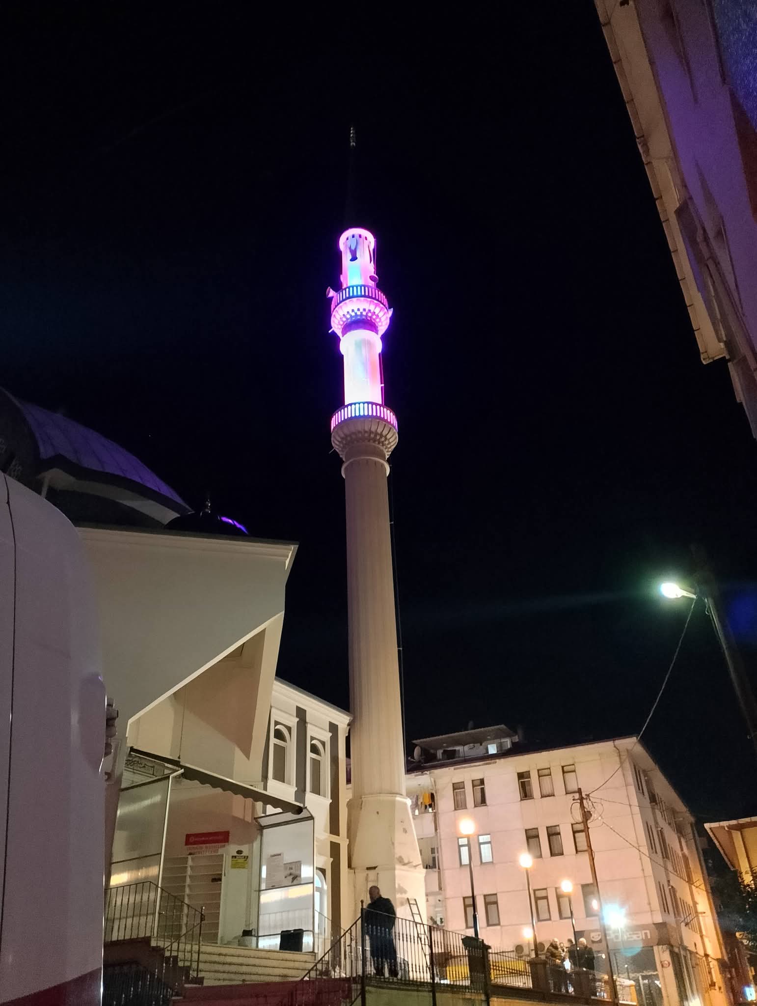 Trabzon’un Ortahisar İlçesi 1 Nolu Erdoğdu Mahallesi’nin merkez camisinin minaresi bordo mavi renklerle ışıklandırıldı. Mahalle muhtarı Şenol Yılmaz’ın girişimleriyle ışıklandırılan minare görenler tarafından da beğeniyle karşılanıyor. Muhtar Yılmaz, “Farkındalık oluşturmak için minaremizin ışıklandırmasını bordo mavi renklerle yaptık. Çok da güzel oldu. Olumlu geri dönüşler alıyoruz” dedi.