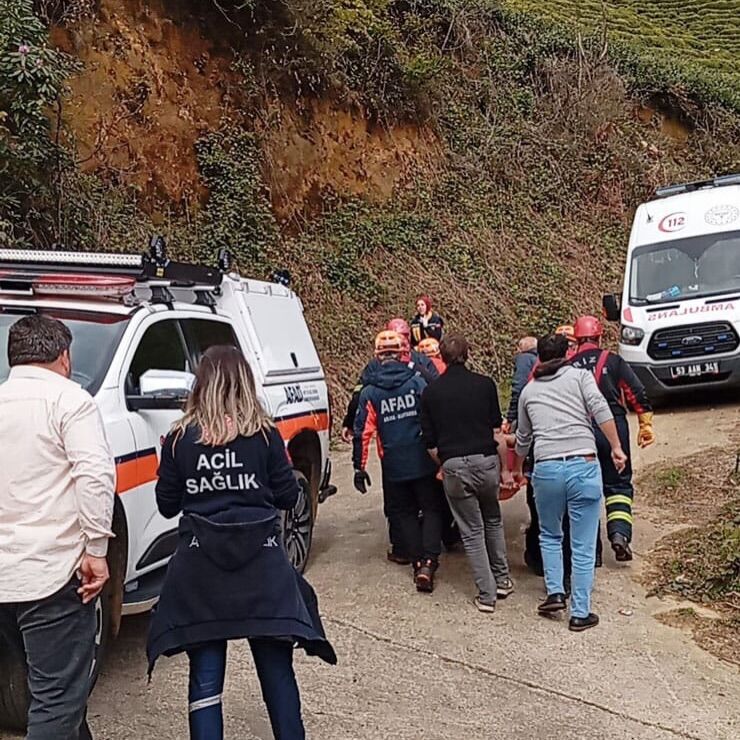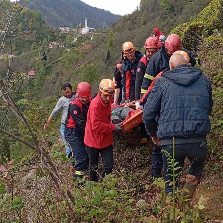 Kanlar içinde yere yığılan H.L.’nin yardımına çevredeki vatandaşlar koştu. Olay yerine çağrılan sağlık ekipleri, bölgenin engebeli ve dik yapısı nedeniyle yaralıya ulaşmakta güçlük çekti. İlk müdahalesi olay yerinde yapılan H.L., vatandaşların ve sağlık görevlilerinin yoğun çabasıyla sedyeye alındı. Yaralı üretici, çay bahçelerinin arasından omuzlarda taşınarak ambulansa ulaştırıldı.