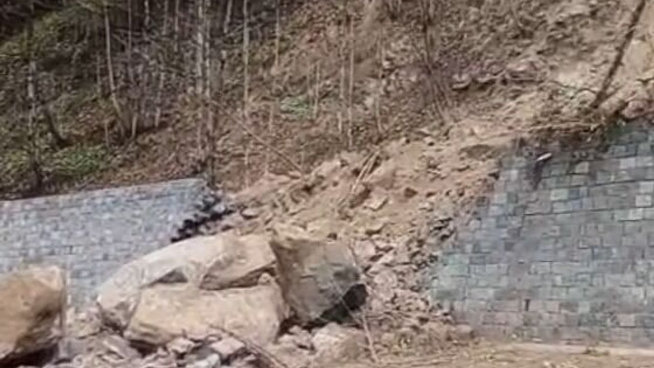 Kentte etkili olan yağışların ardından Çamlıhemşin-Ayder Yaylası kara yolunun 17. kilometresinde yamaçtan kopan kaya parçaları yola düştü.
