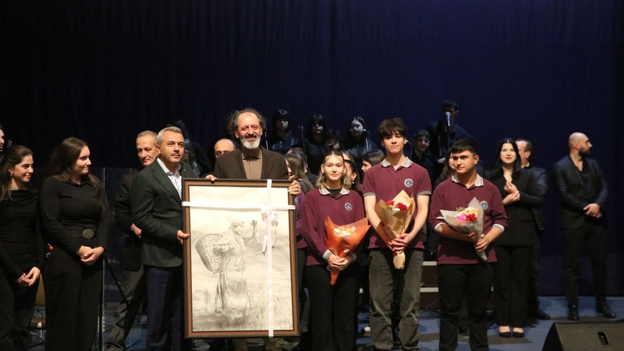 Tiyatro gösterisi sunan öğrenciler, müzisyen Yücel Arzen Hacıoğulları ile çeşitli marş ve şarkılar seslendirdi.