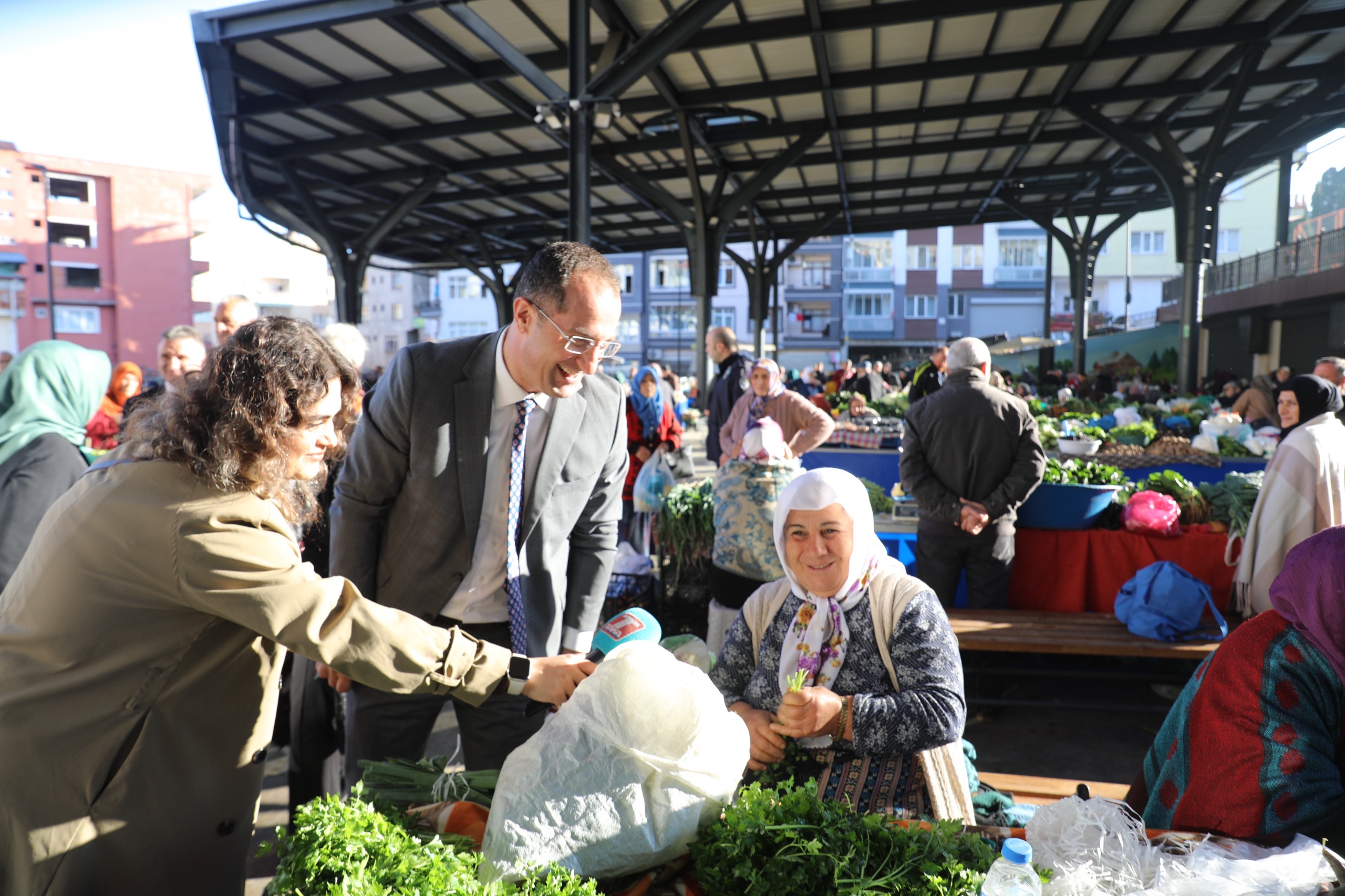 OSMAN NURİ EKİM: Salı pazarı'nda Akçaabat’ta üretilen ürünlerin hepsi vatandaşla buluşuyor. Mahallelerden gelen hanımefendiler ürettikleri ürünleri burada satıyorlar. Tarıma katkı sağlamak için İl Tarım ve İlçe Tarım Müdürlükleri ile ortak projelerimiz var. Meyve fidanlarını ve dağ meyvelerini çiftçimizle buluşturduk. Bir iki yıl içerisinde ürünleri göreceğiz. Aronya, Trabzon hurması gibi ürünler dağıtıldı ve küçük bahçeler yerine birer dönümlük alanlarda ekim yapıldı. Seracılıkta da desteklerimiz var. Ürünlerin bir kısmı verdiğimiz seralarda üretiliyor. Çilek turizmin içine girdi, özellikle Arap turistler çilek tarlalarını ziyaret ediyor. Bu işte kadın üreticilerimiz de aktif. Hem Çınarlık mahallemizde bu güzel bir noktaya gitti. Hem de bizim bu yıl vermiş olduğumuz seraların içerisinde bir tane iki tane daha bu şekilde üretim yapacak kişiler var. Hanımefendiler var hatta bu işi bu şekilde yapan. Sadece beyefendiler değil, hanımlar da yapıyorlar seracılığı artık aile bütçesine ve kendilerini geliştirmek için katkı sağlıyor.