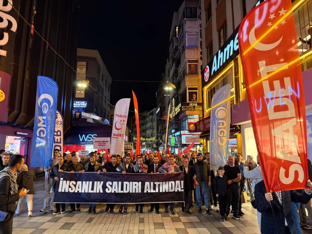 Saadet Partisi Trabzon İl Başkanlığı, Gazze’ye insani yardım götüren Sumud Filosuna destek için yürüyüş düzenledi. Akşam namazı sonrası Konak Cami önünde bir araya gelen partililer, Trabzon Meydan Parkı’na yürüdü. Saadet Partisi Ortahisar İlçe Başkanı Burak Turhan, “İsrail askerleri tarafından Sumud Filosu’na yapılan operasyon sadece bir gemiye değil, insanlığın vicdanına, insafına ve adalet duygusuna yönelmiş bir saldırıdır” dedi.