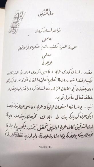 Kürtçenin Kurmancî lehçesine dair bir gramer kitabı. Ama eser bir Kürtçe-Türkçe karşılaştırmalı dil bilgisi ders kitabı niteliğinde. Askeri Rüştiye (ortaokul öğrencileri) için hazırlanmış. Öğrencilere Osmanlıca ve Kürtçeyi karşılaştırmalı şekilde öğretiyor. Yazarı Harputlu Ömer Avni Efendi. 1901 yılında telif edilen eser 1912 yılında Mamüretül Aziz'de El-Hac Hurşid Efendi Matbaasında basılmış.