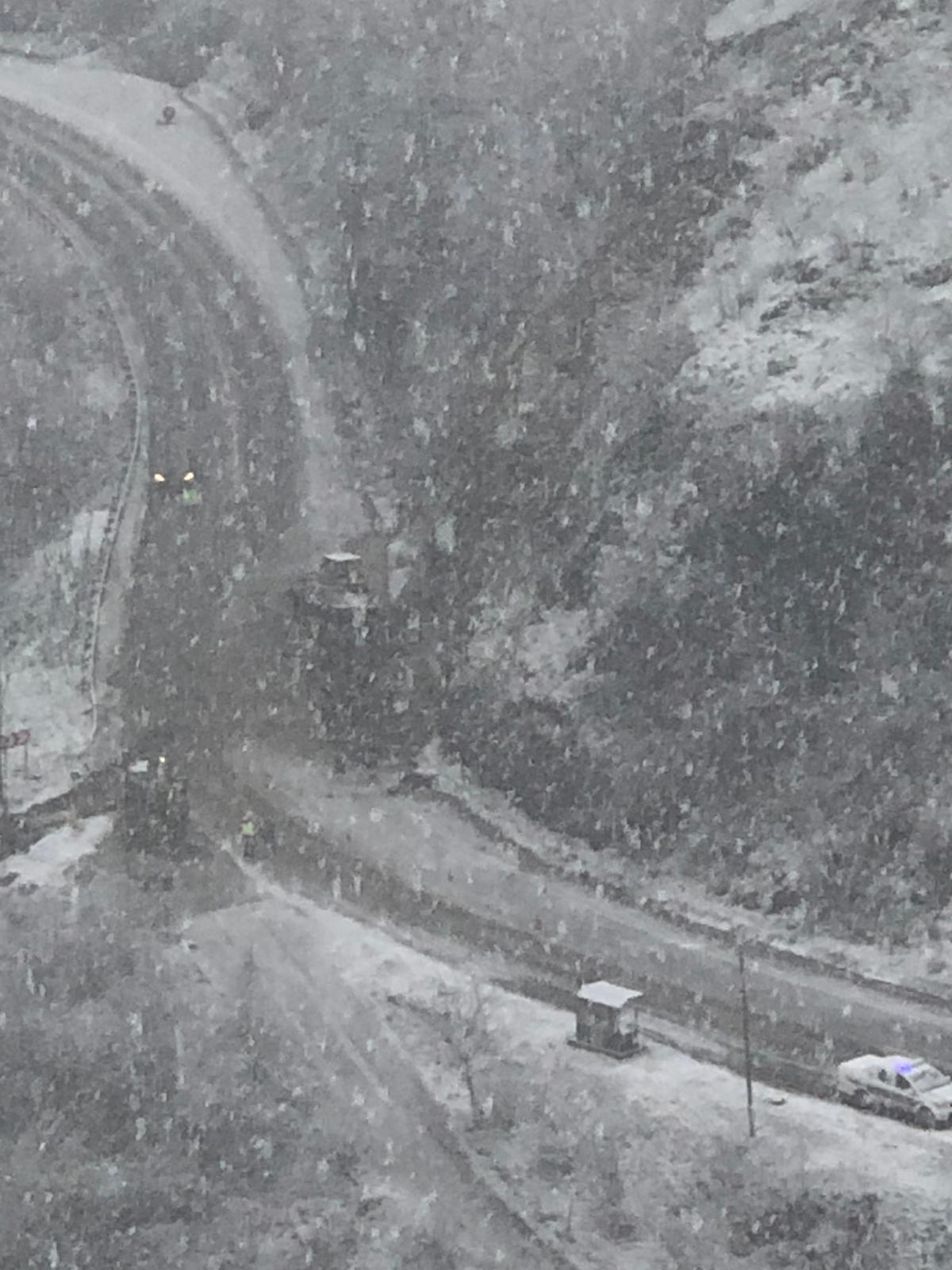 Yamaçtan kopan dev kayaların yol güzergahına düşmesi ve yağışlardan dolayı yumuşayan toprağın da kayması sonucu yol tamamen kapandı.