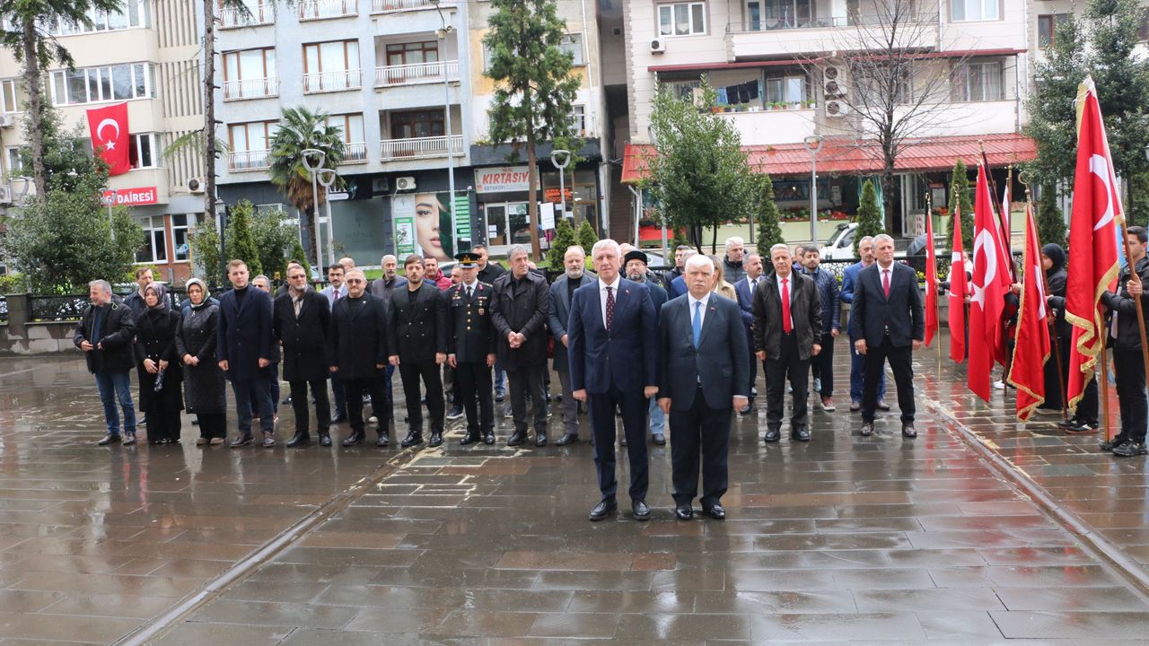 İlçe Milli Eğitim Müdürü İdris Kabahasanoğlu, Hükümet Konağı önündeki Atatürk Anıtı'na çelenk sundu.