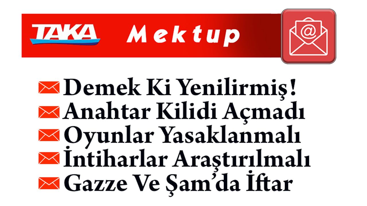 Sevgili Okurlar, Ramazan ayına girdiğimiz ilk günden itibaren iftar sofraları kuruluyor ve kardeşlik mesajları veriliyor. Gazze’de kurulan sofralar yok mu, hepimizin yüreğine su serpiyor. Ayrıca Suriye’de yeni bir yaşam başladı.
