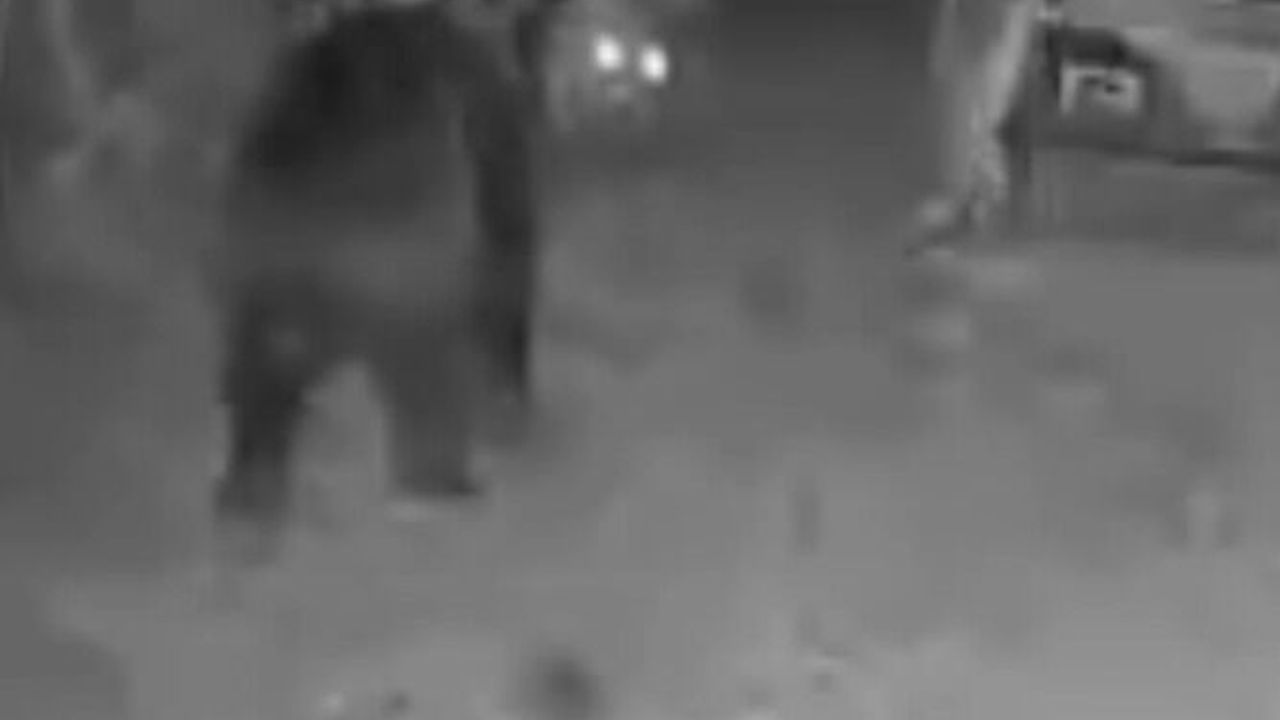 Esen'in, güvenlik kamerasından bölgede dolaştığını fark edip seslenmesi üzerine, ayı koşarak uzaklaştı.