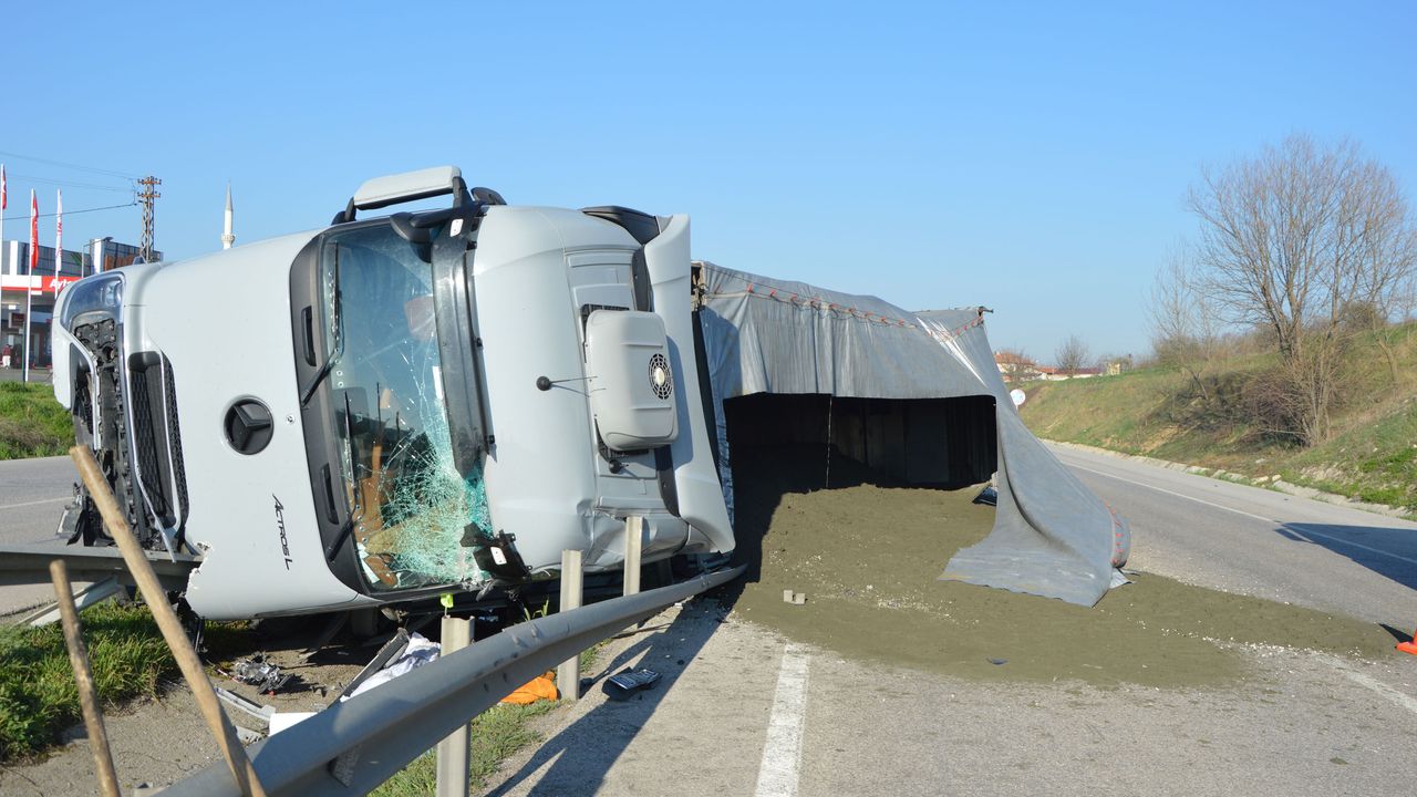 Tırın devrilmesi ve taşıdığı maden cevherinin yolun Ankara istikametine dökülmesi nedeniyle bölgede trafik kontrollü olarak sağlandı.
