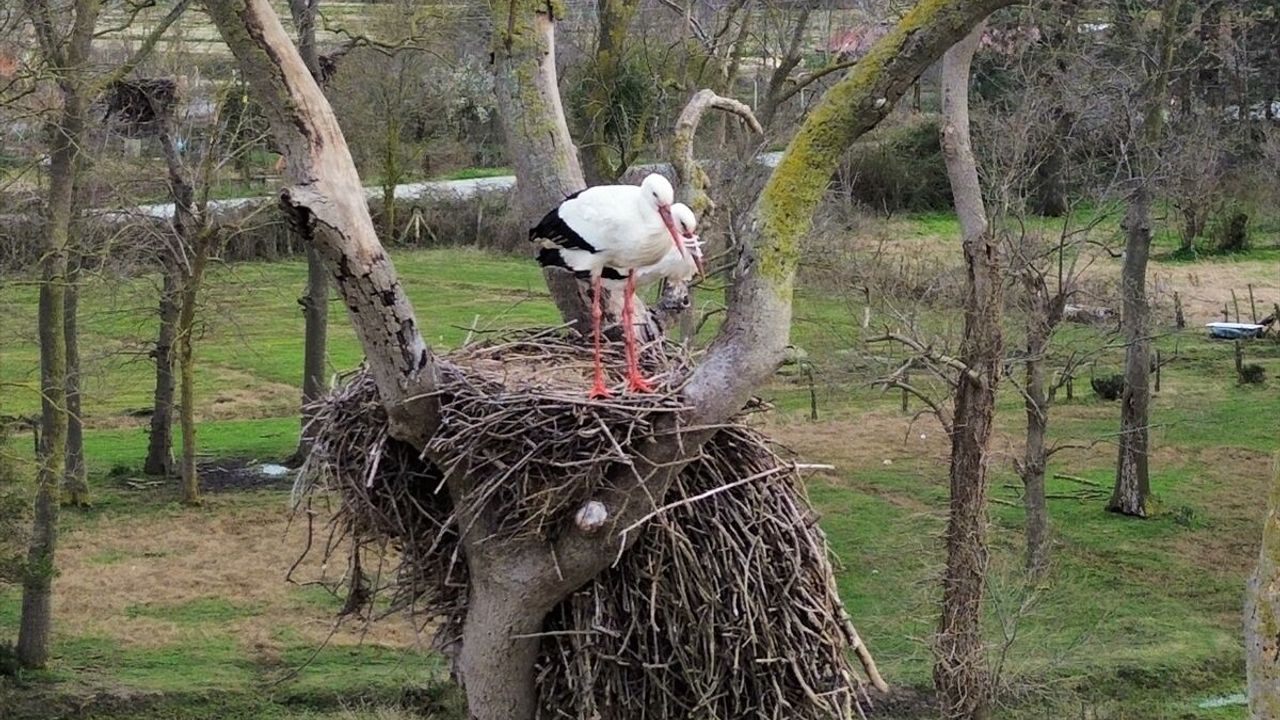 Yılmaz, 'Leylek Toki'de 60'a yakın yuvanın bulunduğunu ve leyleklerin bölgeye bu yıl beklenenden biraz erken gelmeye başladığını söyledi.