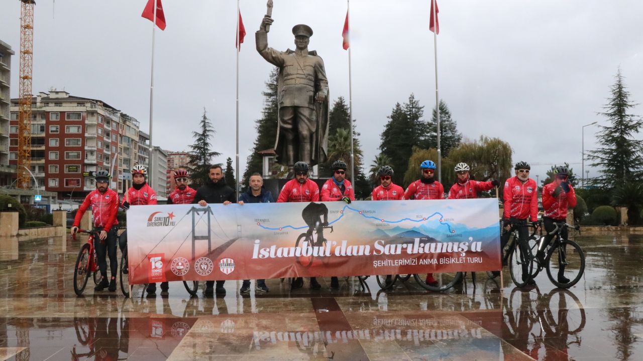 Türkiye Bisiklet Federasyonu ile 15 Temmuz Derneğince gerçekleştirilen anma sürüşüne katılan ve dün kente ulaşan 13 bisikletli için Valilik önünde uğurlama töreni yapıldı.