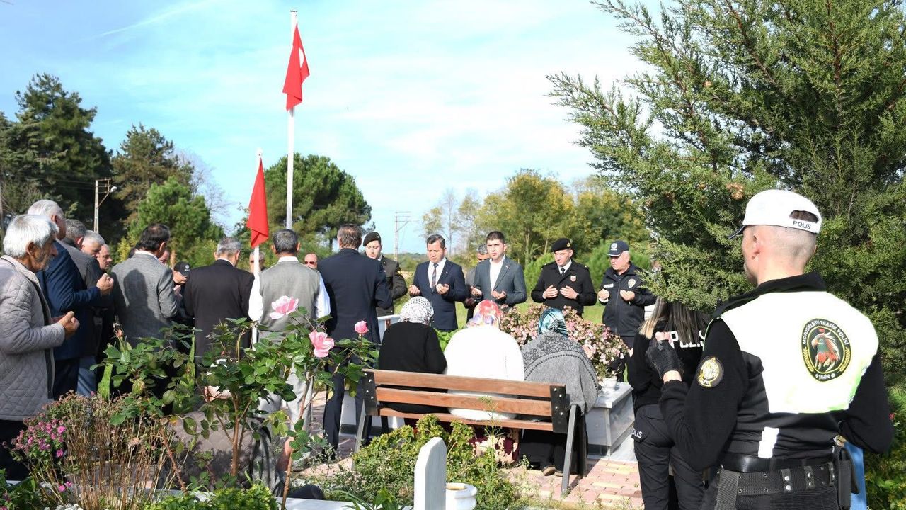 Alaçam ilçesindeki şehitlikte düzenlenen programda Kur'an-ı Kerim okundu, dualar edildi ve şehidin kabrine karanfil bırakıldı.