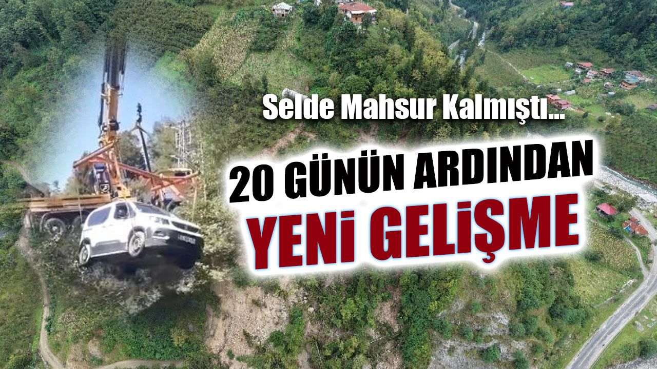 Artvin'in Borçka ilçesi Camili köyünde İlyas Dalkıran, 19 Eylül’de meydana gelen sel felaketinde evinin önünde mahsur kalan aracını 20 gün sonra vinç yardımıyla kurtarabildi.