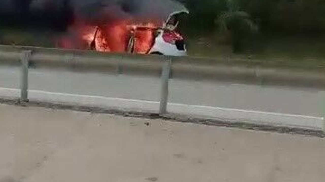 Bursa'da Karacabey-Bandırma istikameti üzerinde seyir halinde olan bir otomobil henüz bilinmeyen bir nedenle alev aldı. Kısa sürede büyüyen yangın, çevredeki sürücülerde paniğe yol açtı.