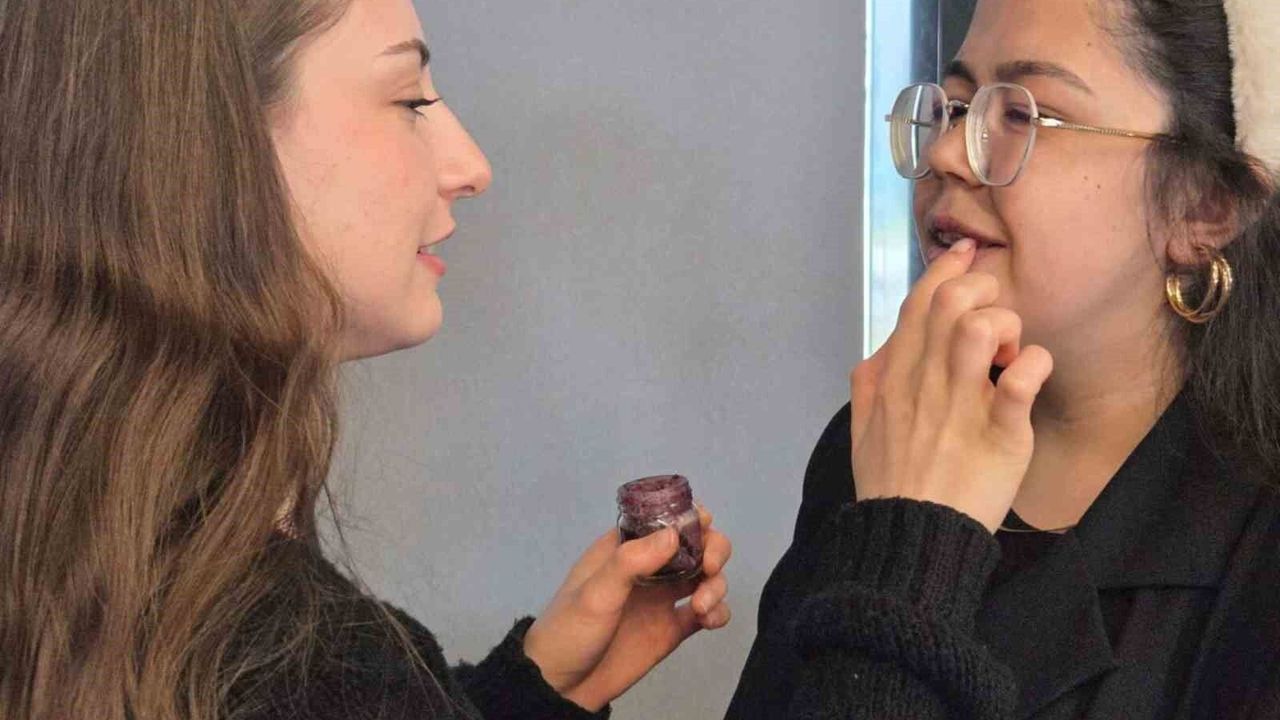 Ruju kullanan Büşra Çeri ise, 'Doğal gıdalardan yapılan kozmetik ürünlerin kullanımı daha güzel oluyor. Sağlık açısından da iyi olduğunu düşünüyorum. Soğan kabuğundan ruj da güzel oldu. Renk verdi. Tadı da kötü gelmiyor' diye konuştu.