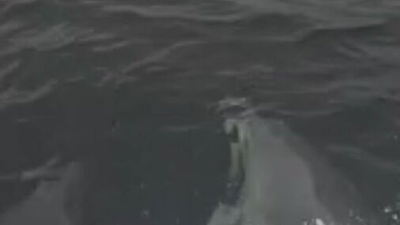 Bir süre sonra gözden kaybolan yunuslar, balıkçı teknesindeki vatandaş kamerasıyla görüntülendi.