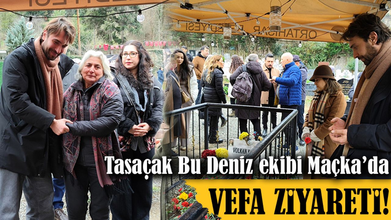 Taşacak Bu Deniz dizisinin oyuncuları Ulaş Tuna Astepe ile Hakan Salınmış, Maçka’da merhum sanatçı Volkan Konak’ın kabrini ziyaret ederek ailesine taziyelerini iletti.