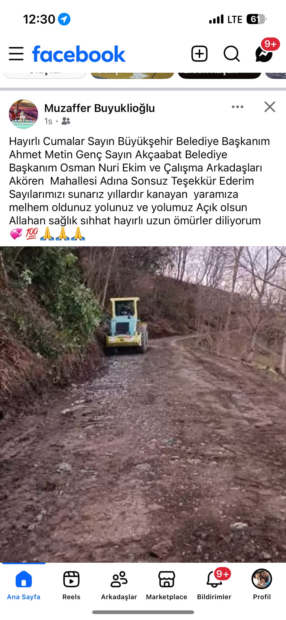 AKÖREN MUHTARINDAN YOL TEŞEKKÜRÜ