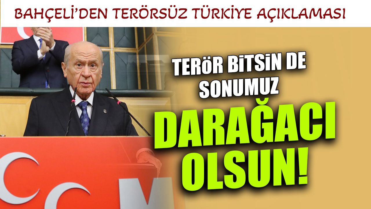 Bahçeli, terörsüz Türkiye sürecinde MHP’nin Türk milletiyle birlikte hareket ettiğini söyledi. “Terörsüz Türkiye hedefinin en ciddi muhataplarından biri İmralı’dır” diyen Bahçeli, TBMM’de kurulan ‘Milli Dayanışma, Kardeşlik ve Demokrasi’ Komisyonu’nun İmralı’ya gitme kararını tarihi bir gelişme olarak nitelendirdi.