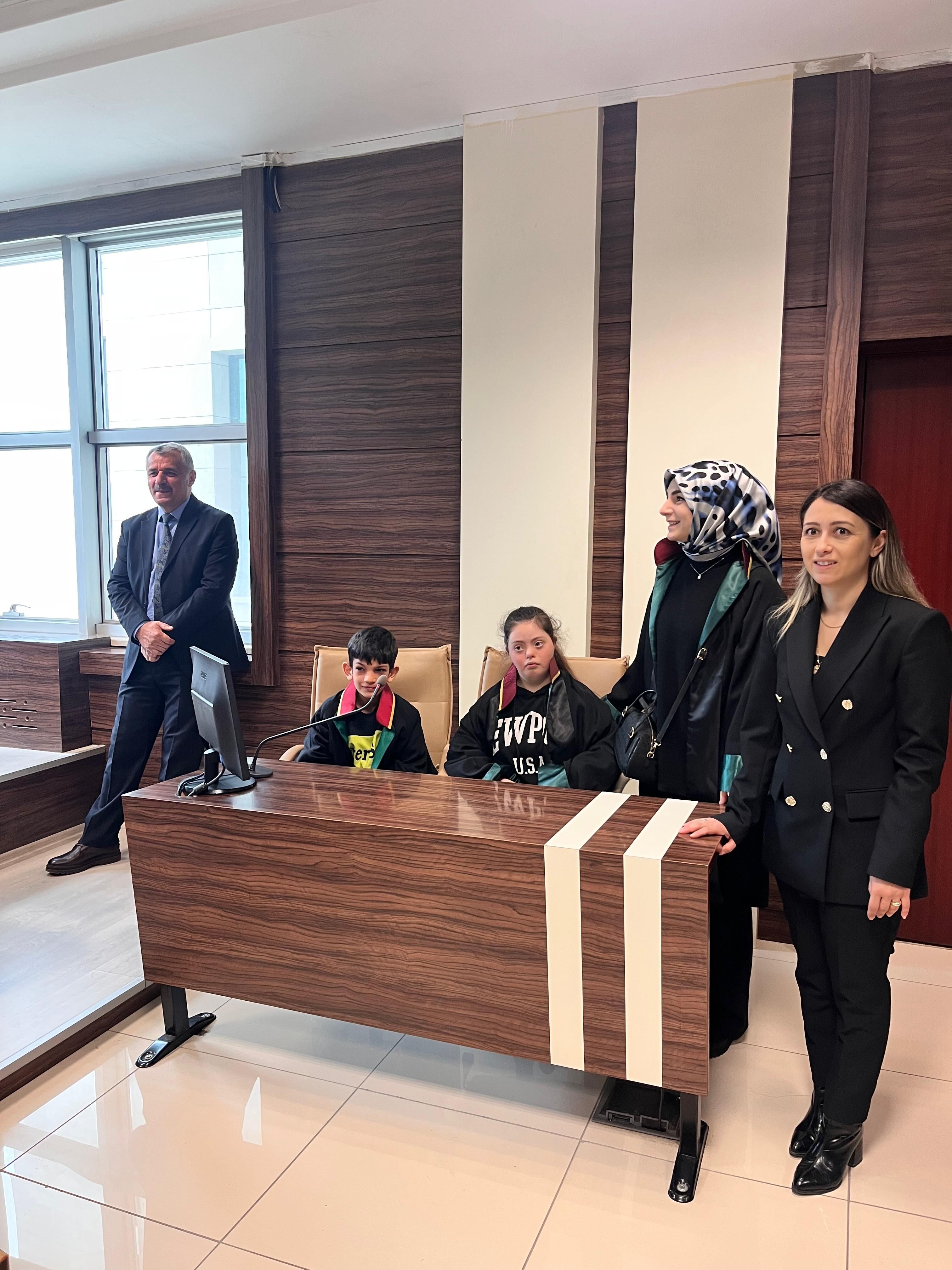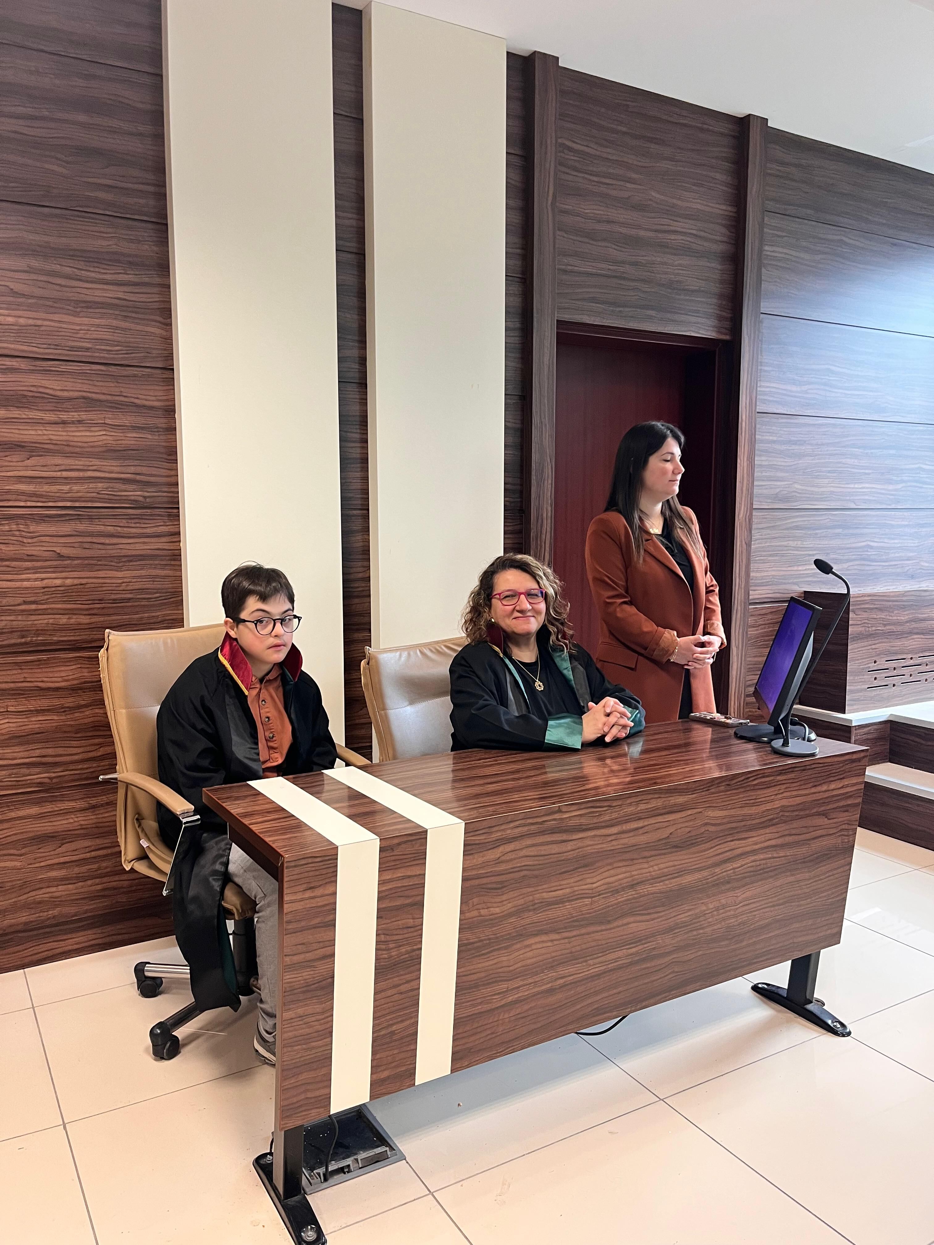23 Nisan haftası kapsamında gerçekleştirilen etkinlik, Trabzon Adalet Sarayı’nda yapıldı. Engelli Hakları Komisyonu öncülüğünde düzenlenen programda, Yomra Özel Eğitim Okulu öğrencileri temsili bir duruşmada rol aldı.