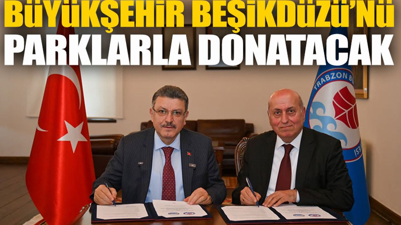 Trabzon Büyükşehir Belediyesi, Beşikdüzü ilçesine 3 adet yeni park kazandırmak için çalışmalara başlıyor. Trabzon Büyükşehir Belediye Başkanı Ahmet Metin Genç ile Beşikdüzü Belediye Başkanı Cahit Erdem arasında imzalanan “Muhtelif Mahallerde Park - Spor Sahası Yapımı ve Park Yenilemeye Yönelik İş Birliği Protokolü” kapsamında park yapımı için resmi adımlar atıldı. Başkan Genç, bu tür projelerle sadece merkezde değil, şehrin tüm ilçelerinde yaşam kalitesini artırmayı hedeflediklerini vurguladı.