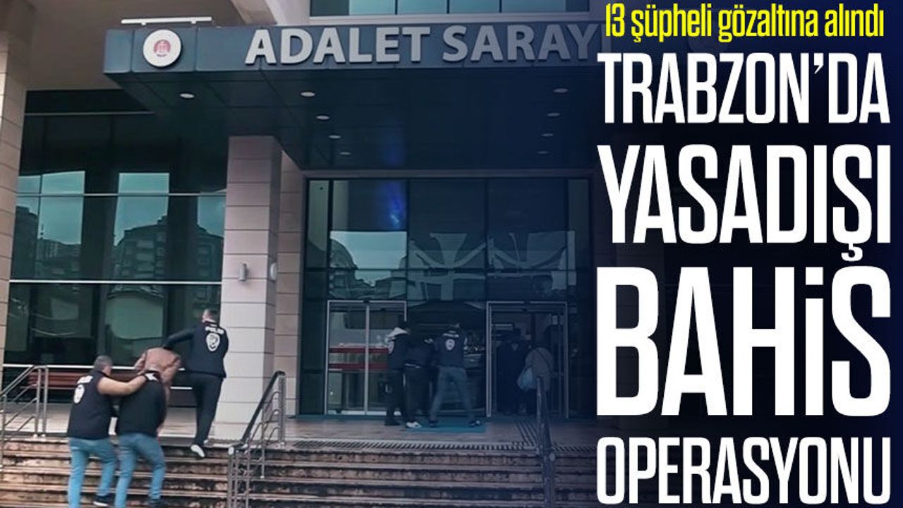Trabzon Cumhuriyet Başsavcılığı koordinesinde yürütülen yasadışı bahis soruşturması kapsamında önemli bir operasyon gerçekleştirildi. Trabzon merkezli olarak 6 ilde eş zamanlı düzenlenen operasyonda çok sayıda adrese baskın yapıldı. Trabzon Emniyet Müdürlüğü Siber Suçlarla Mücadele Şube Müdürlüğü ekipleri tarafından yürütülen çalışmalarda toplam 13 şüpheli gözaltına alındı. Gözaltına alınan şüpheliler emniyetteki işlemlerinin ardından adliyeye sevk edilirken, mahkeme süreci sonrasında 4 kişinin tutuklanmasına karar verildi.