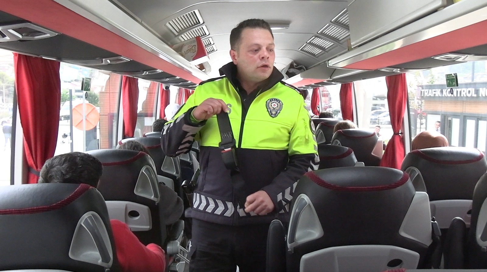 Terminalden çıkış yapan otobüslere binen trafik polisleri, hem sürücülere hem de yolculara seyahat süresince emniyet kemerlerini takmaları yönünde uyarılarda bulundu. “Sevgi bağımız emniyet kemerleri bizi hayata ve sevdiklerimize bağlar” diyen Trafik Polisi Hamza Efendioğlu, bu küçük ama hayati önlemin kazalarda ölüm riskini büyük oranda azalttığını vurguladı.