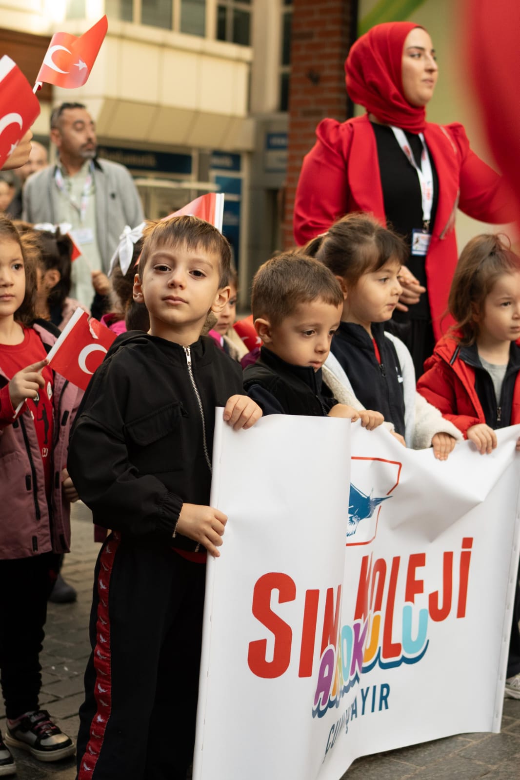Büyük mücadeleler sonunda elde edilen Cumhuriyet gibi kazanımlarımızı korumak ve bu yüce değerleri çocuklarımıza aktarmak boynumuzun borcudur." diye konuşan Kolej Müdürü Rafet Kazaz, bütün ulusal bayramları aynı önem ve sevinçle kutlamaya devam edeceklerinin altını çizdi.