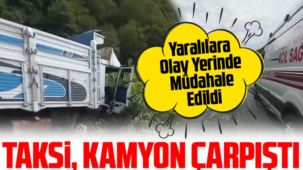 Çarpışmanın etkisiyle araçlarda büyük hasar meydana gelirken, taksi ve kamyondaki yolcular yaralandı.
