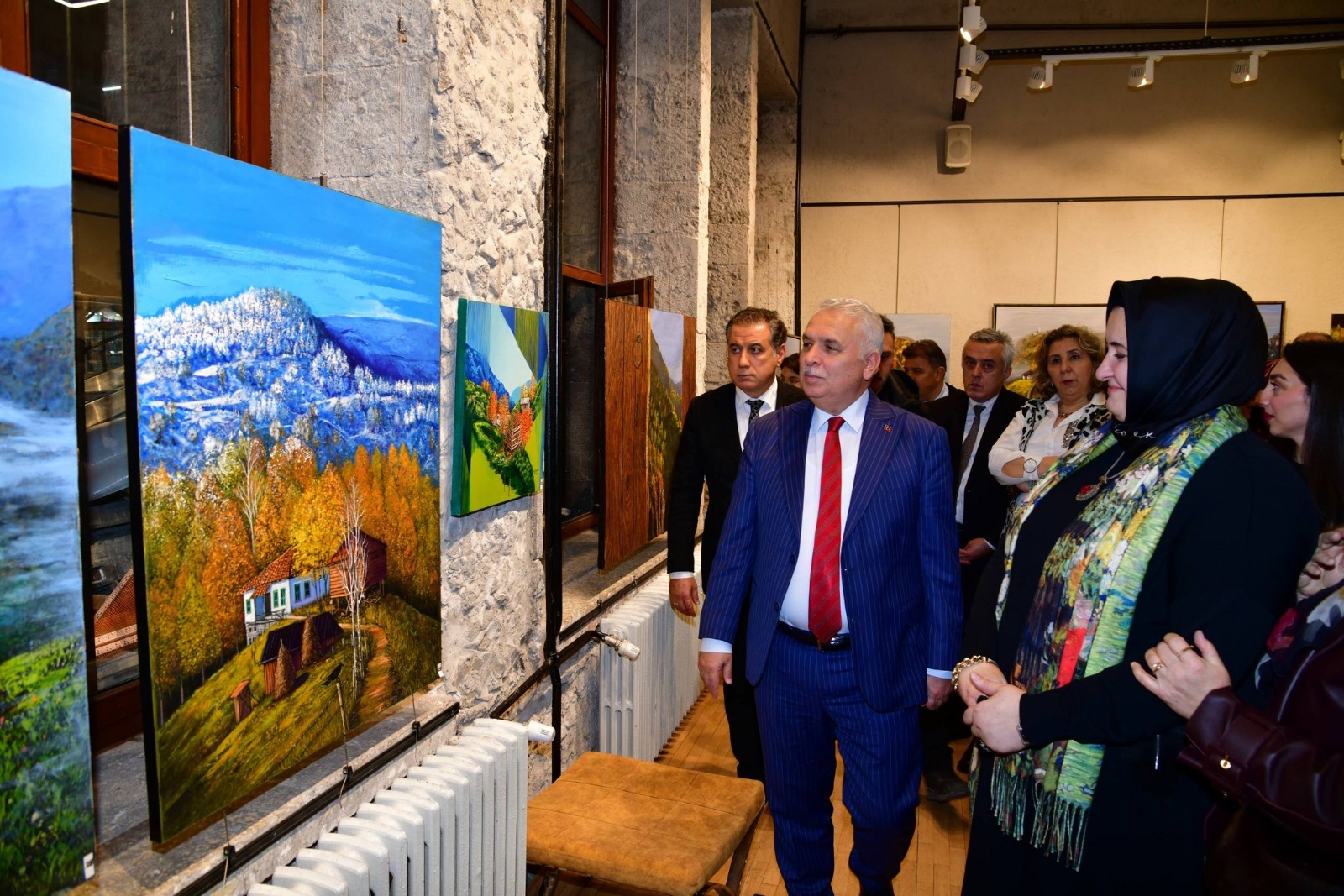 Trabzon Valisi Aziz Yıldırım, ressam Ayşe Gülay Yaroğlu tarafından hazırlanan “Dağların Sesi” adlı resim sergisini ziyaret etti. Trabzon Güzel Sanatlar Galerisi’nde gerçekleştirilen sergi açılışına; Vali Aziz Yıldırım’ın yanı sıra İl Kültür ve Turizm Müdürü Tamer Erdoğan ve çok sayıda sanatsever katıldı. Sergiyi gezerek eserler hakkında bilgi alan Vali Yıldırım, sergide yer alan çalışmaların Karadeniz’in eşsiz doğal güzelliklerinden ilham alınarak hazırlandığını belirtti.