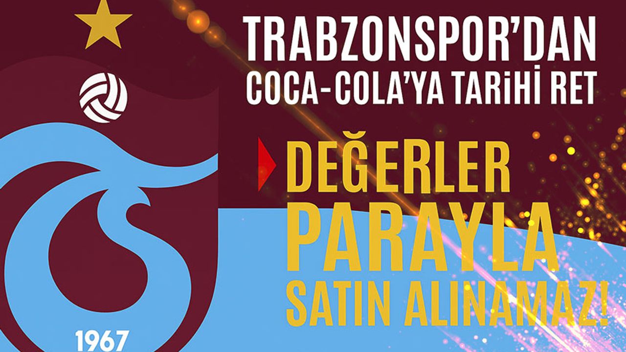 Trabzonspor Süper Lig kulüplerine sunulan sponsorluk teklifleri arasında yer alan CocaCola önerisini geri çevirdi. 4 büyük kulüp içinde Beşiktaş, Galatasaray ve Fenerbahçe CocaCola’nın bir milyon 200 bin Euro’luk sponsorluk teklifini kabul ederken, Kuzey’in Fırtınası Trabzonspor, bir milyon 400 bin Euro’luk teklifi tereddütsüz reddetti.
