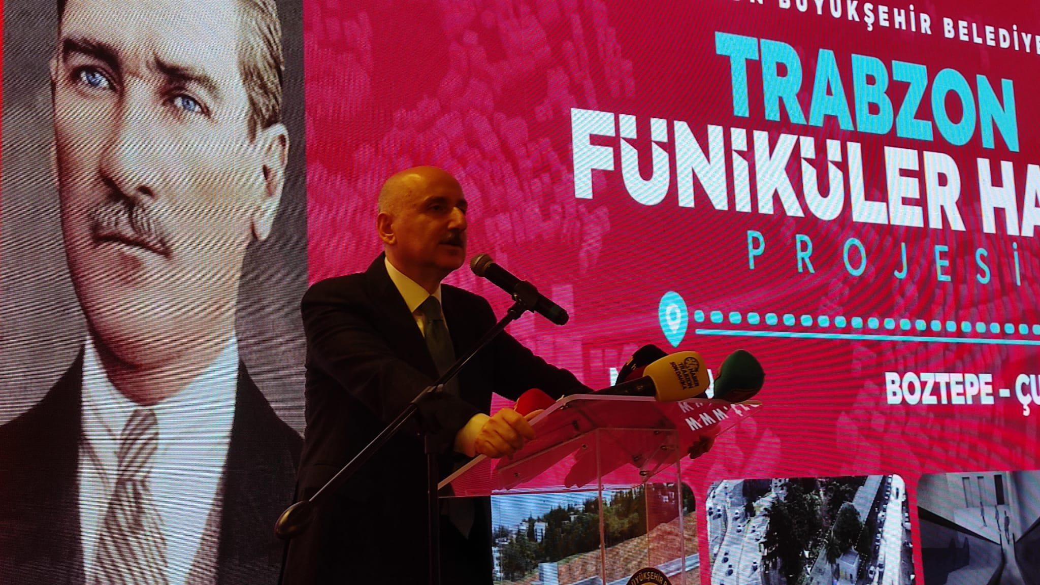Trabzon Büyükşehir Belediye Başkanı Ahmet Metin Genç, konuşmasında Trabzon’un hızla büyüyen nüfusu, artan bireysel araç kullanımı ve şehir içi trafik yoğunluğu nedeniyle ulaşım sistemlerinin yeniden ele alınması gerektiğini belirtti. Genç, "1540 metre uzunluğunda olacak bu hatla, Meydan’dan Çukurçayır’a 3 dakika 42 saniyede ulaşım sağlanacak. Türkiye’de yalnızca İstanbul’da olan bu sistemi Trabzon’a getiriyoruz" dedi.