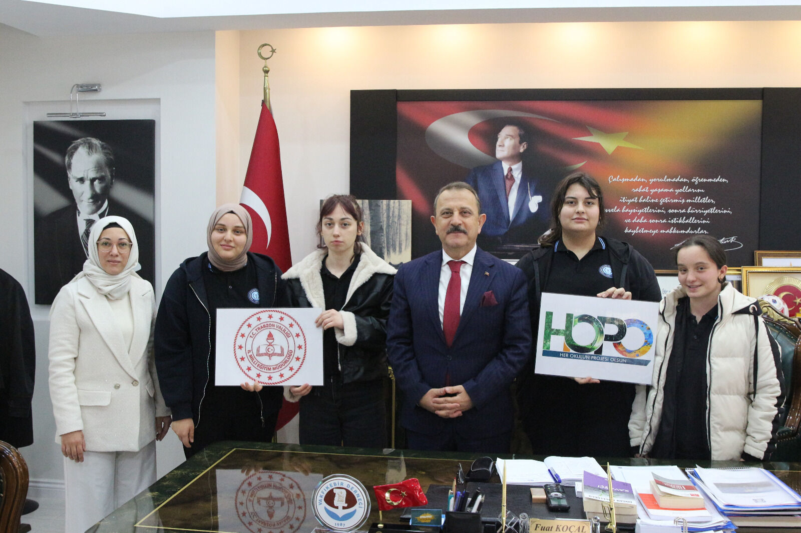 Vakfıkebir Gülbahar Hatun Anadolu Lisesi öğrencileri, öğretmenleri Seçil Güner’in koordinasyonunda HOPO Projesi kapsamında atık malzemeleri sanatsal eserlere dönüştürerek örnek bir çalışmaya imza attı. Projede yer alan öğrenciler Esra Kocaman, Sinem Aygün, Almira Topkara ve İrem Sevim, Vakfıkebir Belediye Başkanı Fuat Koçal’ı makamında ziyaret etti.