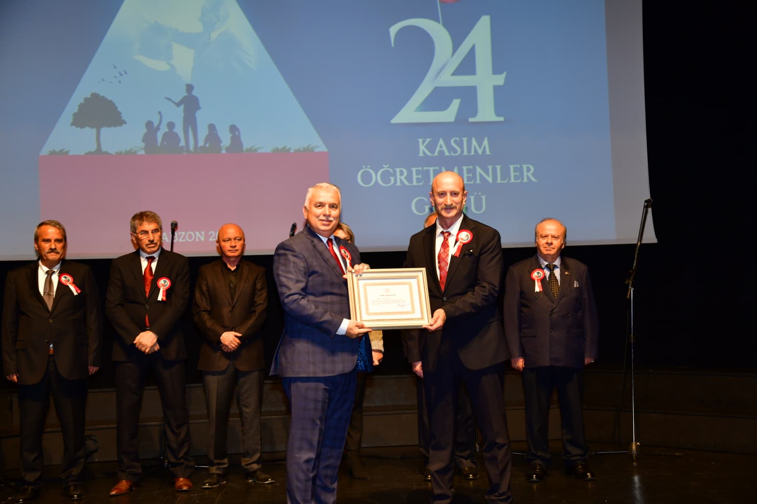 Gazi Mustafa Kemal Atatürk’e “Millet Mektepleri Başöğretmenliği” unvanının verilmesinin 97. yılı ve 24 Kasım Öğretmenler Günü, Trabzon’da anlamlı bir törenle kutlandı. Trabzon Valiliği koordinasyonunda İl Millî Eğitim Müdürlüğü tarafından Hamamizade İhsan Bey Kültür Merkezi’nde düzenlenen programa çok sayıda davetli katıldı. Vali Aziz Yıldırım konuşmasında öğretmenlerin toplumsal gelişimdeki belirleyici rolünü vurgulayarak, onların bilgiye yön veren, geleceği şekillendiren önemli rehberler olduğunu ifade etti. Program, sergi, müzik dinletisi, ödül takdimleri ve toplu fotoğraf çekimiyle son buldu.
