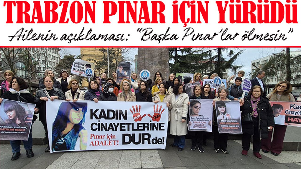 Mahkemenin kararını açıklamasının ardından Trabzon’da vatandaşlar adalet çağrısıyla bir araya geldi. Kahramanmaraş Caddesi’nde başlayan sessiz yürüyüşte, “Pınar için adalet” yazılı pankart taşındı. Katılımcılar, herhangi bir slogan atmadan Atatürk Alanı’na kadar yürüdü. Yürüyüş, burada yapılan basın açıklamasıyla sona erdi.