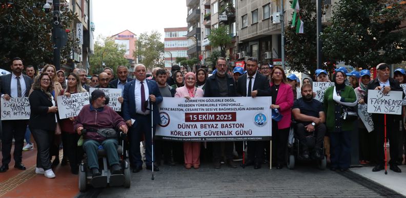 Avrasya Engelsiz Yaşam Derneği ile Trabzon Barosu Engelli Hakları Komisyonunca organize edilen etkinlikte Kahramanmaraş caddesinde bir araya gelen katılımcılar, beyaz bastonlarıyla 15 Temmuz Şehitleri ve Hürriyet Parkı'ndaki Atatürk alanına yürüdü.