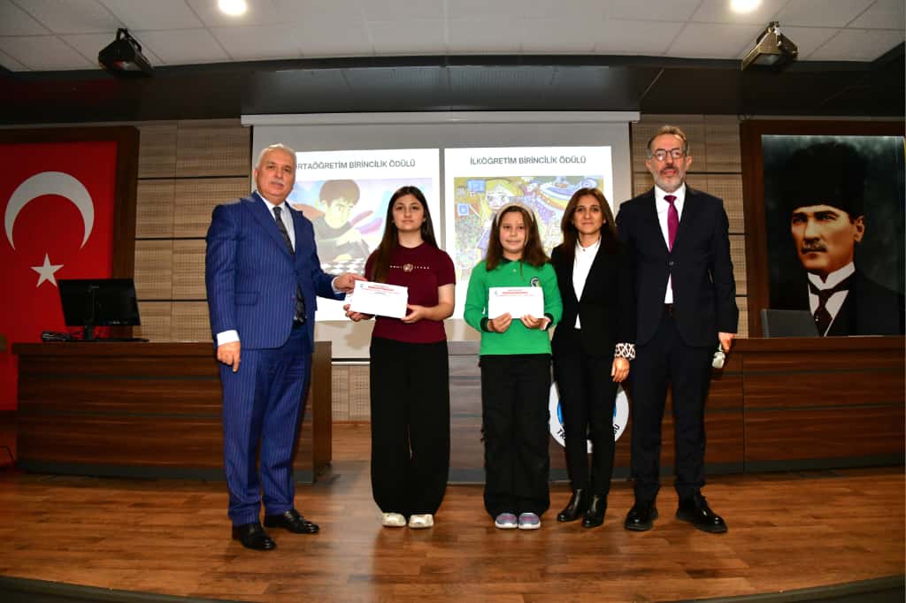 Resim yarışmasında dereceye giren öğrenciler törende tek tek sahneye çağrılarak ödüllerini aldı. Vali Aziz Yıldırım tarafından verilen birincilik ödülleri, salonda büyük alkış aldı. Ödül töreni sonrasında sergi alanını gezen protokol üyeleri, öğrencilerden eserleri hakkında bilgi alarak her bir çalışmayı ilgiyle inceledi.