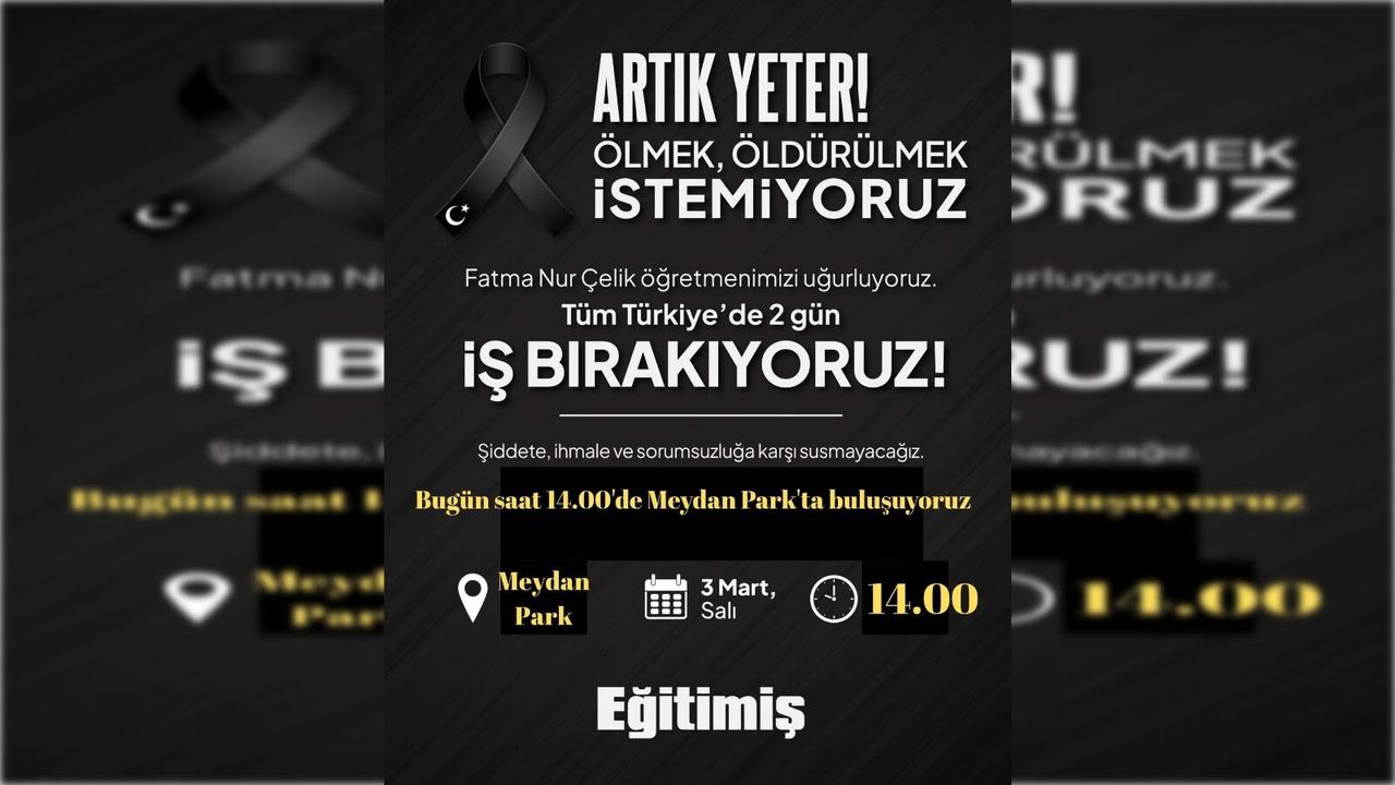 Trabzon’daki buluşmanın, Türkiye genelinde yapılacak iki günlük iş bırakma eylemiyle de eş zamanlı gerçekleşeceği bildirildi. Eğitim camiası, yaşanan olayın unutulmaması ve benzer acıların tekrar etmemesi için birlik mesajı verdi.