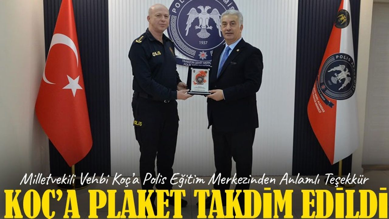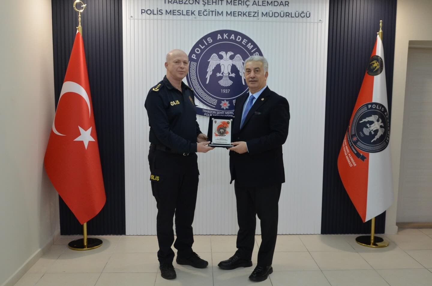 AK Parti Trabzon Milletvekili Vehbi Koç, Şehit Meriç Alemdar Polis Meslek Eğitim Merkezi Müdürü İsmail Akıntürk’ü ziyaret etti. Ziyarette, Koç’un kütüphaneye yaptığı kitap bağışı dolayısıyla teşekkür plaketi takdim edildi.