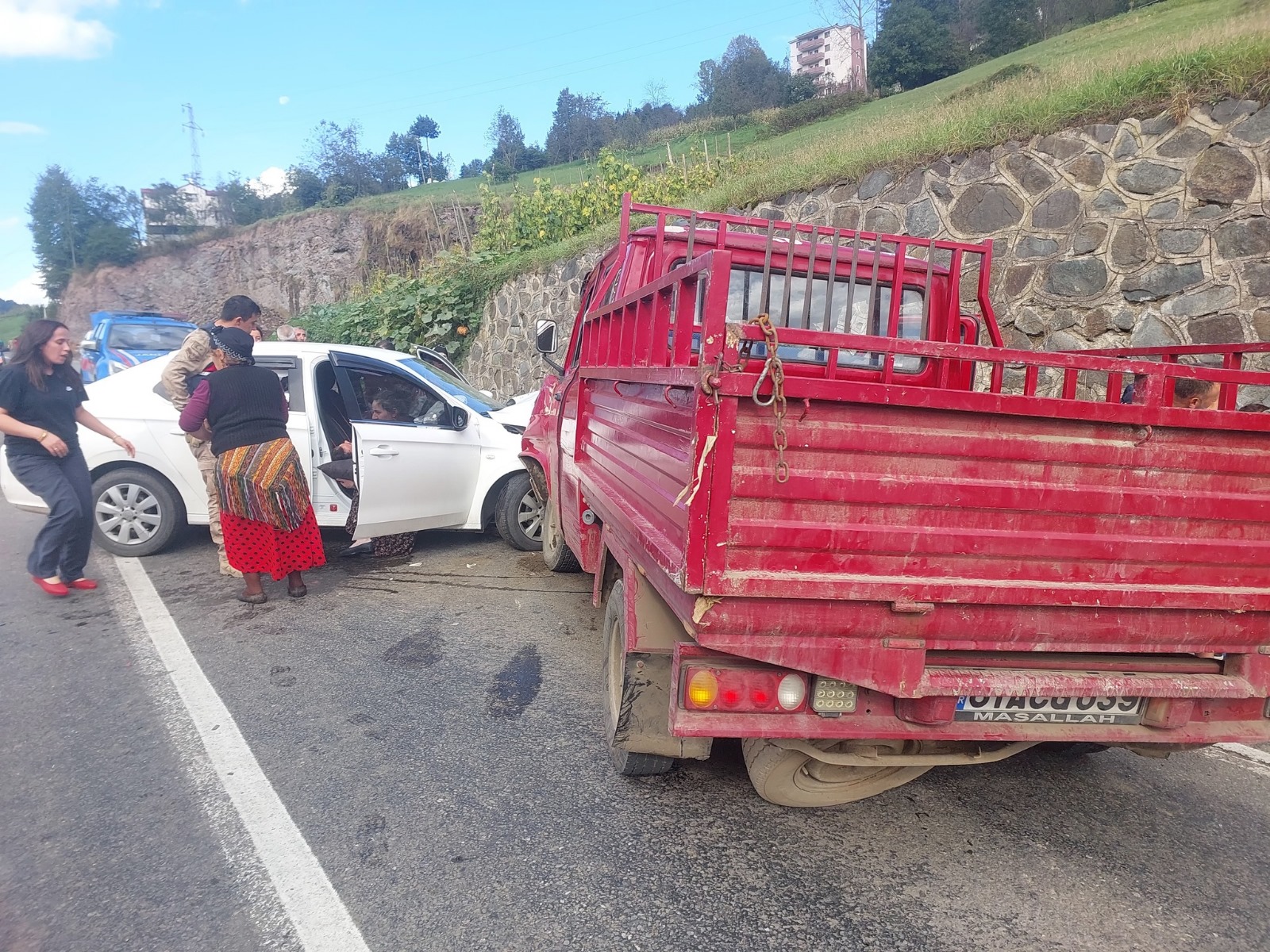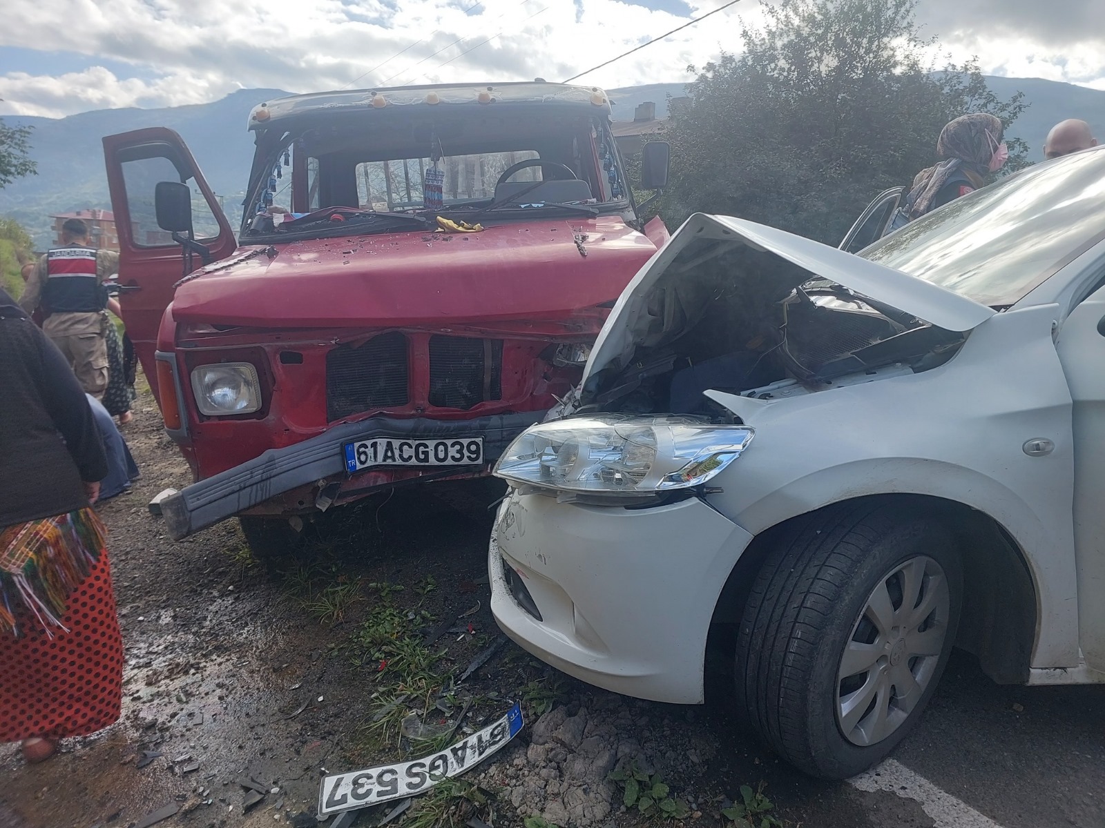 Sürücüleri öğrenilemeyen 61 ACG 039 plakalı kamyonet ile 61 AGS 537 plakalı otomobil kafa kafaya çarpıştı.