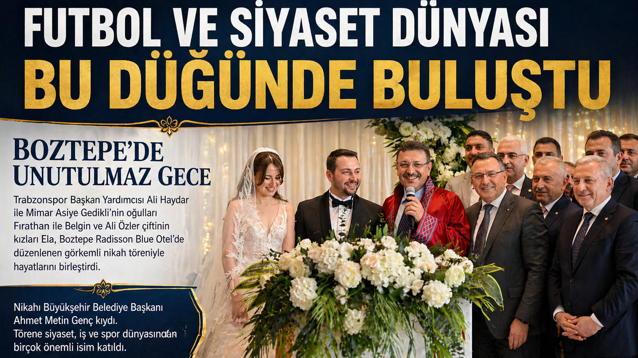 Trabzonspor Başkan Yardımcısı Ali Haydar-Mimar Asiye Gedikli’nin yakışıklı evlatları Fırathan ile Belgin-Ali Özler çiftinin güzeller güzeli kızları Ela yaşamlarını birleştirdiler. Boztepe Radison Blue Otel’deki nikahı Büyükşehir Belediye Başkanı Ahmet Metin Genç kıydı. Her zaman ki gibi samimi ve esprili bir merasime imza atan başkan Genç iki isimden güçlü ‘Evetlerini’ aldıktan sonra sözü şahitlere verdi ve onlarda şahitliklerini dile getirerek mutluluk dilediler.
