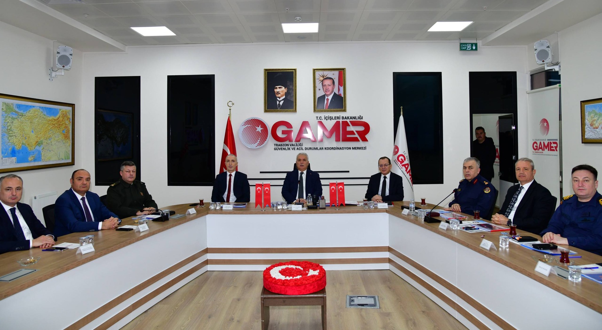 İl Güvenlik ve Asayiş Koordinasyon Kurulu Toplantısı, Trabzon Valisi Aziz Yıldırım başkanlığında gerçekleştirildi. Toplantıya; Vali Yardımcısı Dr. Ali Yılmaz, Garnizon Komutanı Tuğgeneral Burak Yılmaz, İl Jandarma Komutanı Tuğgeneral B. Murat Yakın, İl Emniyet Müdürü Ali Loğoğlu, Sahil Güvenlik Doğu Karadeniz Grup Komutanı SG Binbaşı Aytaç Bayırlı, ilçe kaymakamları, güvenlik birimleri ve ilgili kurum temsilcileri katıldı. Toplantıda, il genelinde güvenlik ve asayişe ilişkin mevcut durum değerlendirilerek, alınması gereken tedbirler ve kurumlar arası koordinasyon konuları istişare edildi.