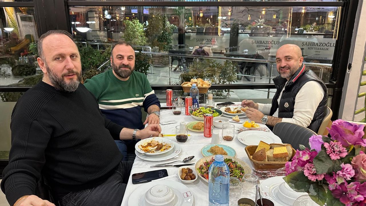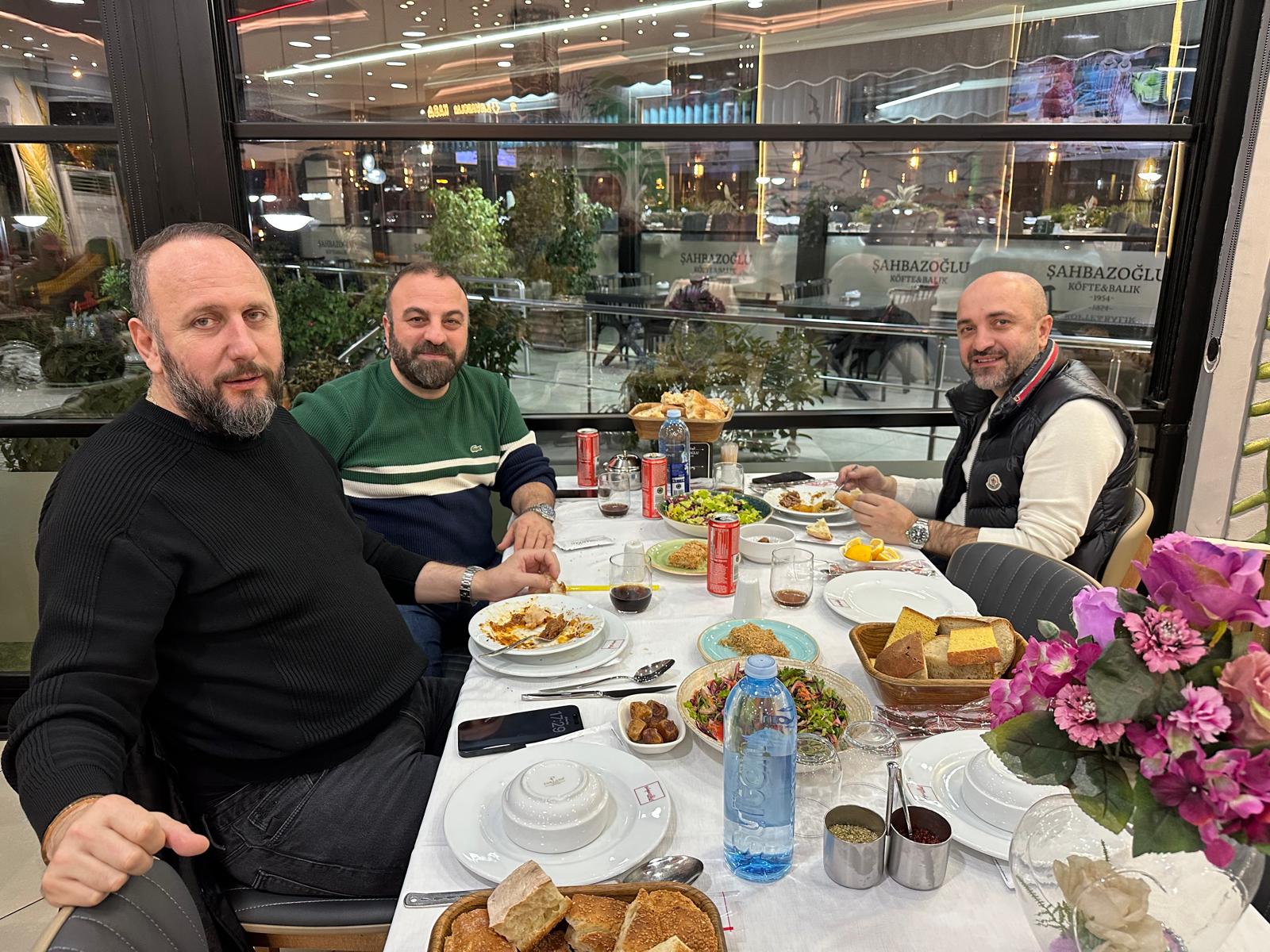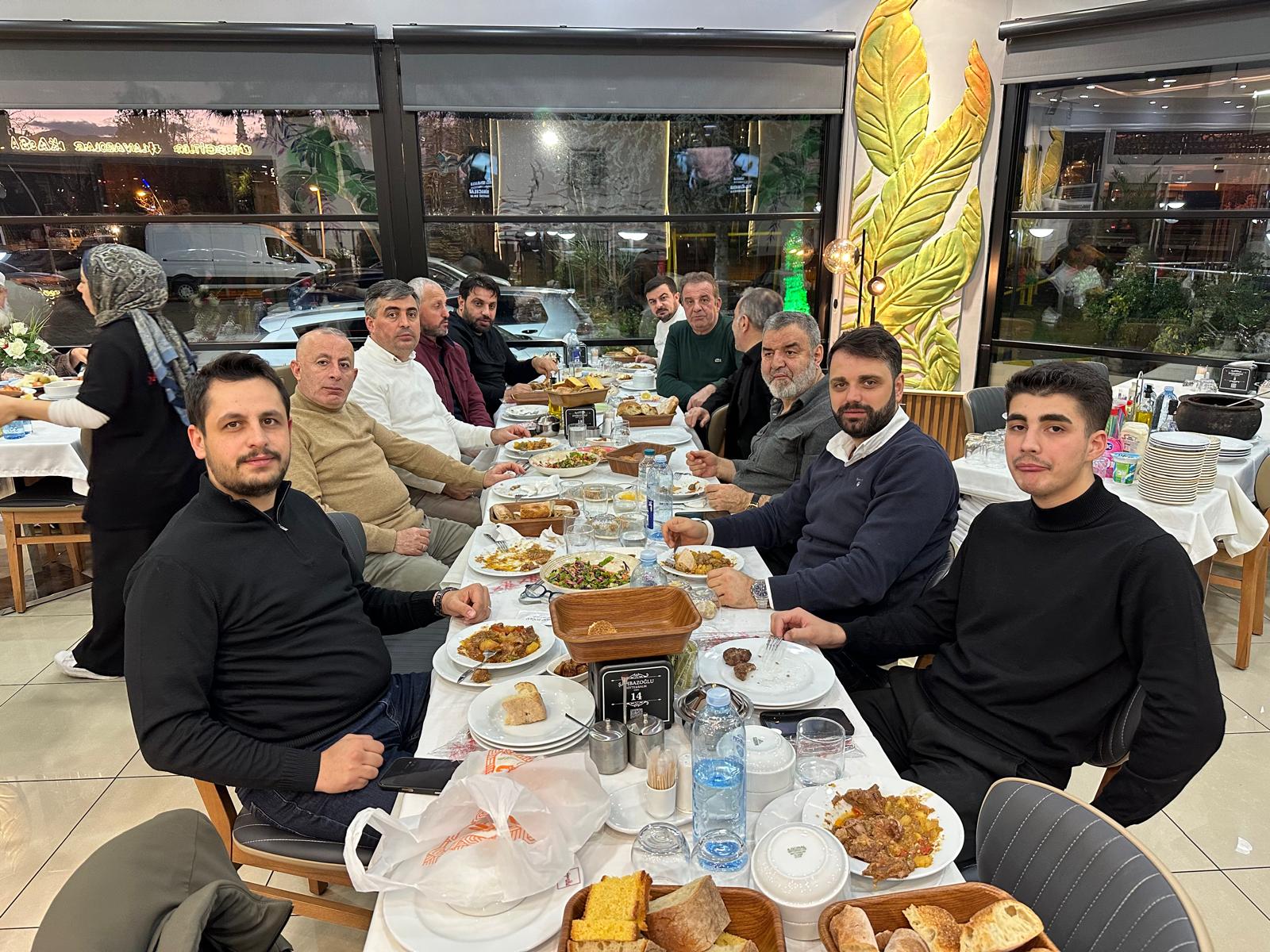 TSO Meclis Üyesi Cevat Kara, TTSO Meclis Üyesi Metin Demir, TTSO Yönetim Kurulu Başkan Yardımcısı Ali Haydar Baş, iş insanları Aydın Ateş, Necati Hamzaoğlu, Osman Akkaya, İsmail Şahbaz, Mustafa Güney, Mehmet Şahbaz, Ömer Bayraktar, Bilal Özer, Şahbazoğlu’nda oruçlarını açarak sofranın bereketini paylaşıyor. Programa öncülük eden TTSO Meclis Üyesi Metin Demir, “3 aylar dolayısıyla Pazartesi günleri oruçlu oluyoruz.