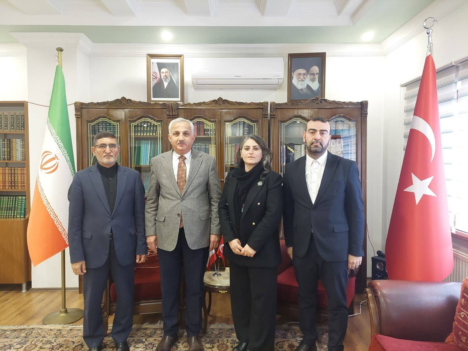 Turan Ülküsü Genel Merkezi’nden İran İslam Cumhuriyeti Trabzon Başkonsolosluğu’na anlamlı ziyaret. Turan Ülküsü, başkonsolos Naser Mohebati’ye yaptığı ziyaret kapsamında İran halkının yalnız olmadığına vurgu yaptı. Turan Ülküsü Kalkınma ve Dayanışma Derneği Genel Başkanı Kenan Kuru, gerçekleştirilen ziyaretin Türk Dünyası adına yeni bir uyanışın, yeni bir dayanışmanın ve yeni bir mesajın yükselişinin ifadesi olarak vücut bulduğunu ifade etti. Başkonsolos Naser Mohebati, ziyaretten ötürü memnuniyetini dile getirirken ziyarete, Turan Ülküsü Genel Sekreteri Cengiz Akkaya, Genel Başkan Yardımcısı Songül Kartal da eşlik etti.