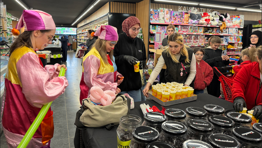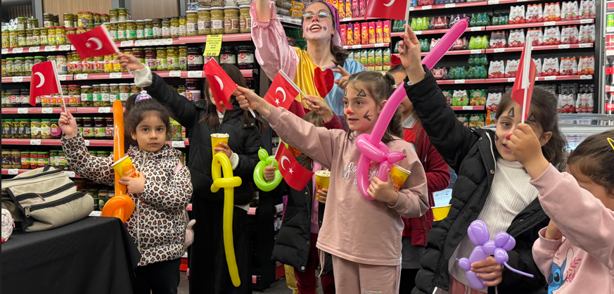 7 Şubede Bayram Karnavalı Çukurçayır, Hızırbey, Erdoğdu, Yomra, Karşıyaka, Yeşiltepe ve Yıldızlı olmak üzere toplam 7 şubede eş zamanlı olarak gerçekleştirilen kutlamalarda, marketlere gelen minik ziyaretçileri palyaçolar karşıladı. Çocuklara bayramın ruhunu yaşatmak amacıyla hazırlanan çeşitli hediyeler takdim edilirken; yüz boyama, oyunlar ve müzik eşliğinde şubeler adeta birer festival alanına dönüştü.
