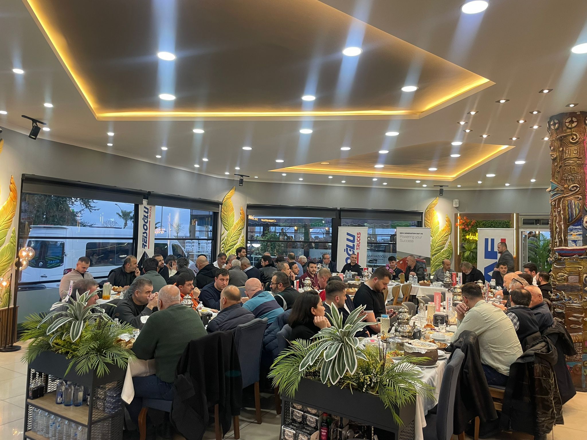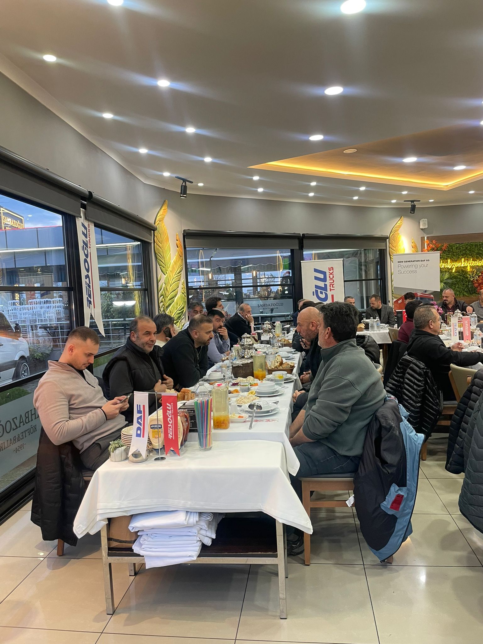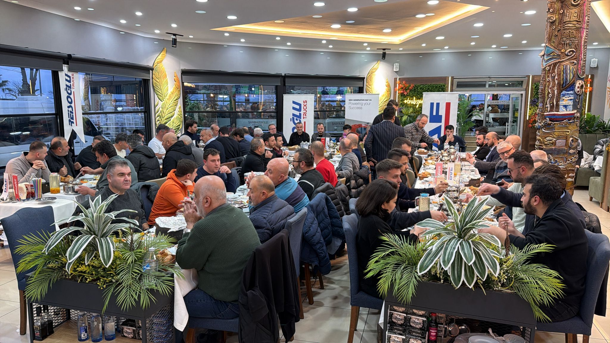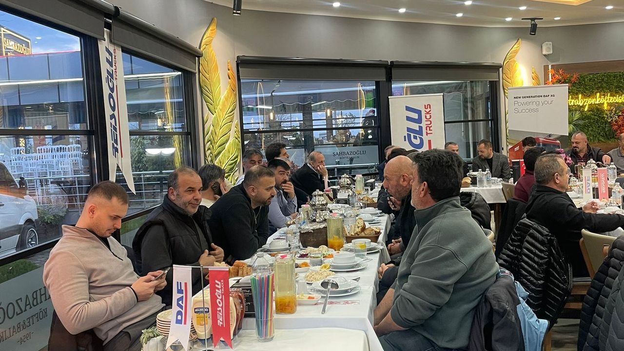 DAF Trucks Trabzon Bayii Reisoğlu Ağır Vasıta, bölgedeki nakliyecileri iftar yemeğinde ağırladı. Faroz sahili Şahbazoğolu Restoran'da düzenlenen iftar yemeğinde sektörün mevcut durumu, pazar stratejileri ve büyüme hedefleri ele alındı.