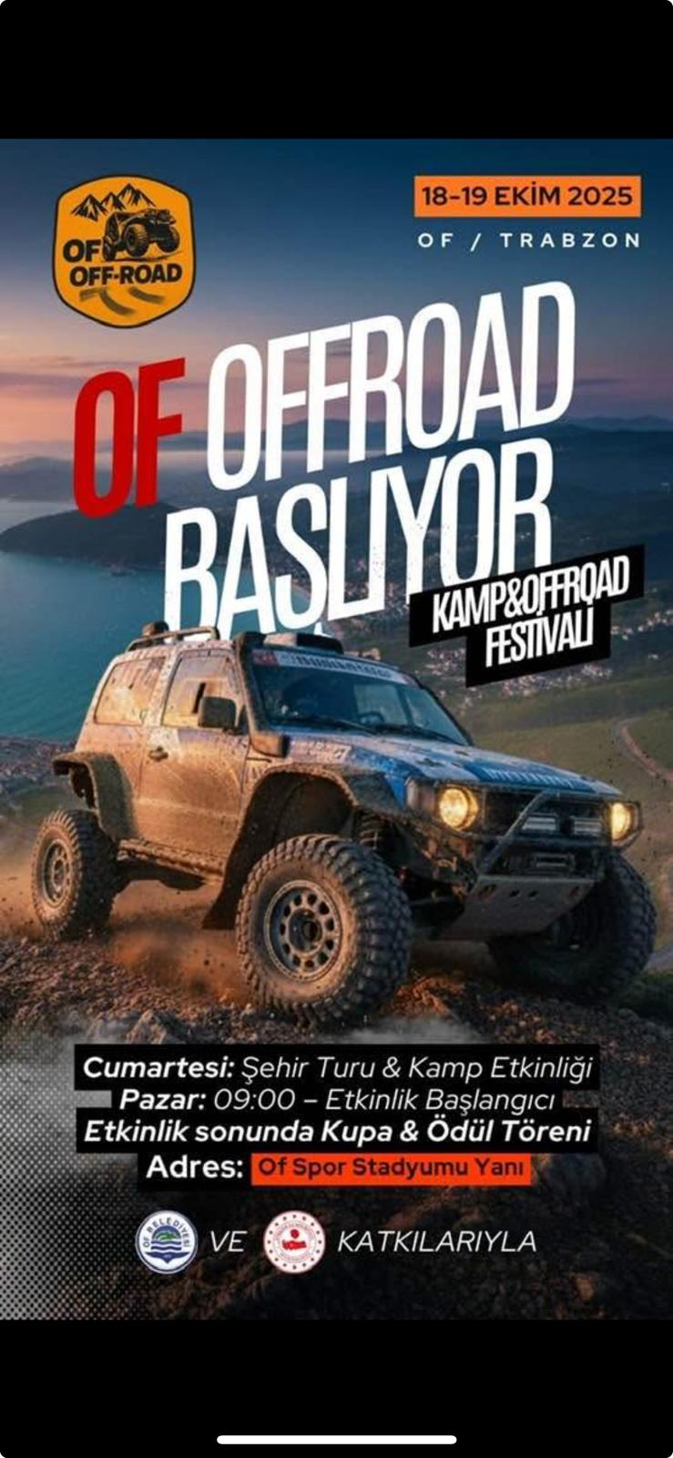 Trabzon’un Of ilçesi, bu yıl ilk kez gerçekleştirilecek olan Ofroad Kampı ve Ofroad Festivali’ne ev sahipliği yapmaya hazırlanıyor. 18-19 Ekim 2025 tarihlerinde iki gün boyunca sürecek organizasyon, hem otomobil sporları meraklılarına hem de doğa tutkunlarına unutulmaz anlar yaşatacak. Festival, Of Kaymakamlığı, Of Belediyesi ve Of Offroad Spor Kulübü Derneği iş birliğiyle düzenleniyor. Etkinliğin yalnızca Trabzonlulara değil, Türkiye’nin dört bir yanından gelecek konuklara hitap etmesi bekleniyor.