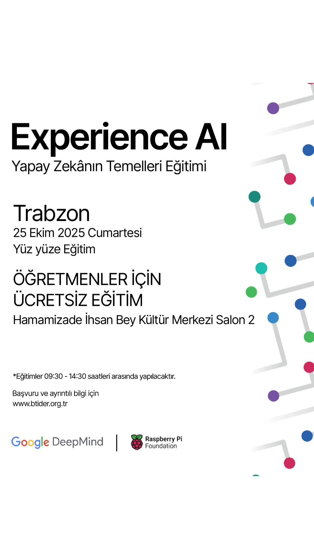 "Experience AI" programı, özellikle eğitimcilerin yapay zekâ ile tanışmasını ve bu teknolojiyi sınıf ortamına taşıyabilmesini amaçlıyor. Program, Google DeepMind ile Raspberry Pi Foundation iş birliğinde yürütülüyor. Eğitimin Trabzon ayağında ise Prof. Dr. Şule Yüksel Özmen’in rehberliğinde katılımcılara, yapay zekânın nasıl çalıştığı ve eğitim süreçlerinde nasıl uygulanabileceği anlatılacak. Özellikle yapay zekânın öğrenci başarısının takibi, öğrenme stillerinin analizi gibi alanlarda nasıl kullanılabileceğine dair somut örnekler sunulacak. Bu yönüyle eğitim, öğretmenlerin yalnızca teorik bilgi değil; pratik beceriler de kazanmasını hedefliyor.